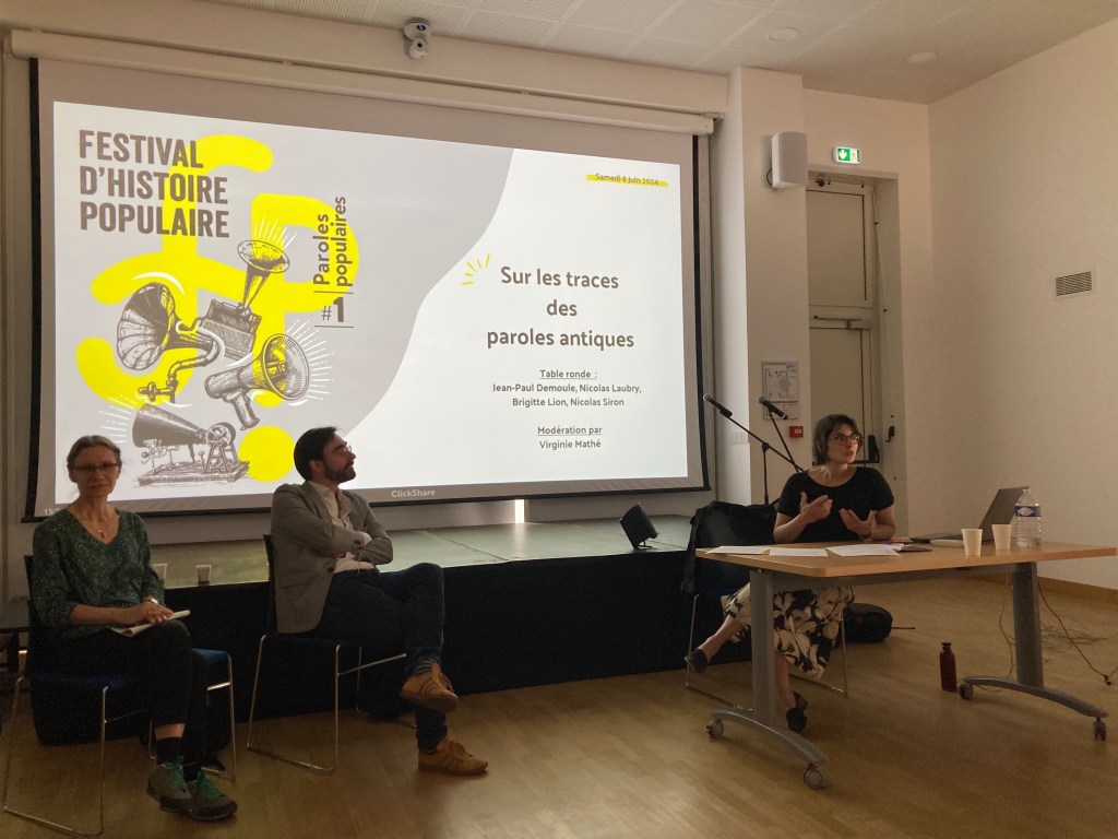 Jean-Paul Demoule, Nicolas Siron, Brigitte Lion et Nicolas Laubry et Virginie Mathé pour une table ronde sur les traces des paroles populaires antiques
