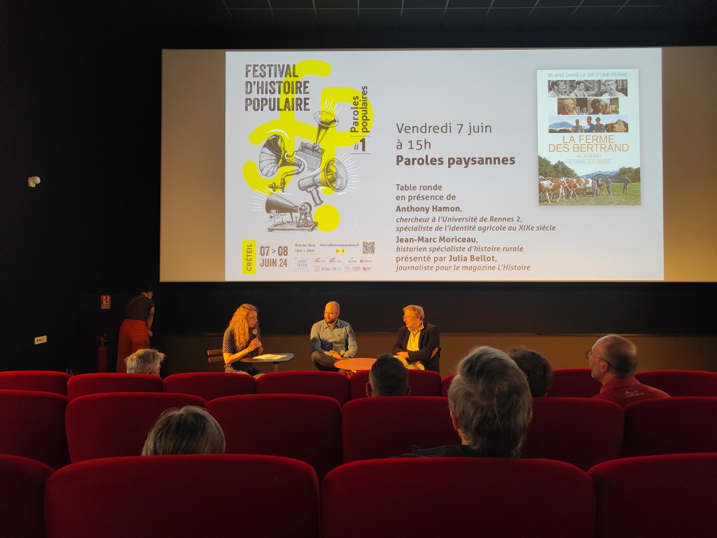 Julia Bellot, Anthony Hamon et Jean-Marc Moriceau pour une projection-débat autour de La ferme des Bertrand de Gilles Perret sur la question des « Paroles paysannes ».